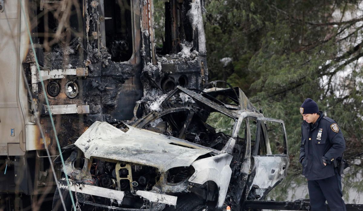 The train smashed into the SUV at about 50 mph (80 kph) after the engineer hit the emergency brake only three seconds before the fiery collision. Parts of the railroad’s electrified third rail ripped off the ground, piercing the SUV’s gas tank and slicing into the train’s first passenger car.