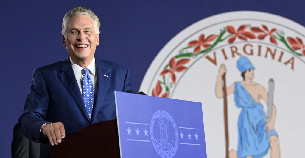 Former Virginia Gov. Terry McAuliffe is seen here speaking to supporters on Nov. 2, 2021, in McLean, Virginia, during his unsuccessful bid for a second, nonconsecutive term. (Jonathan Newton/The Washington Post via Getty Images)