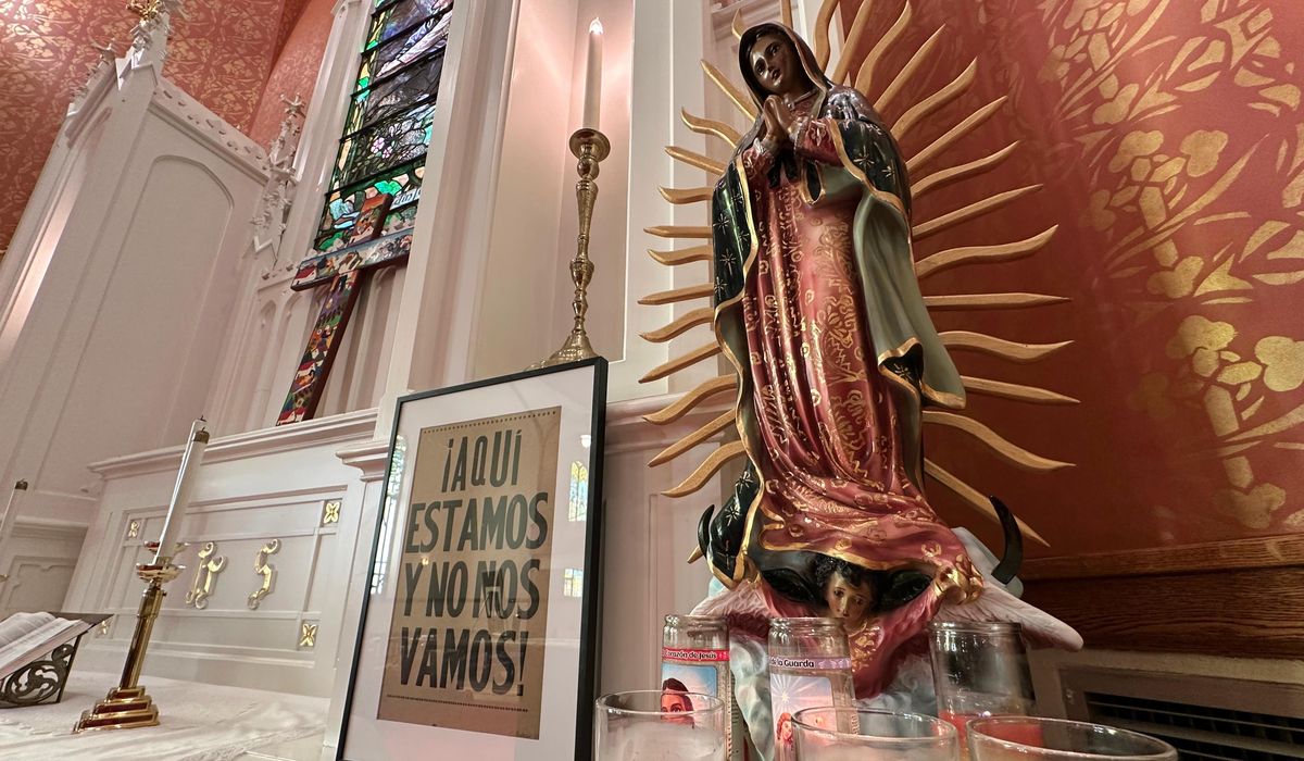 Inside St. Paul’s, worshippers lit candles and greeted each other with smiles and hugs. A statute of Our Lady of Guadalupe stood at the front of the church.
