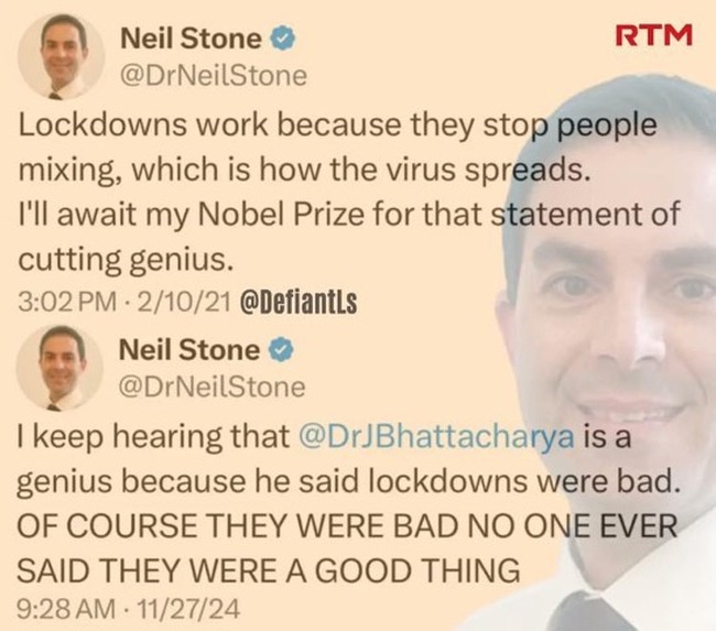 Even more absurd is that they would put these masks on and take them off multiple times–putting the virus directly and for extended periods of time right next to their nose, all while believing in the talismanic power of a piece of cloth. It only took a moment’s thought to realize that the idea was absurd on its face, but belief in expertise short-circuited the ability or inclination to think at all.