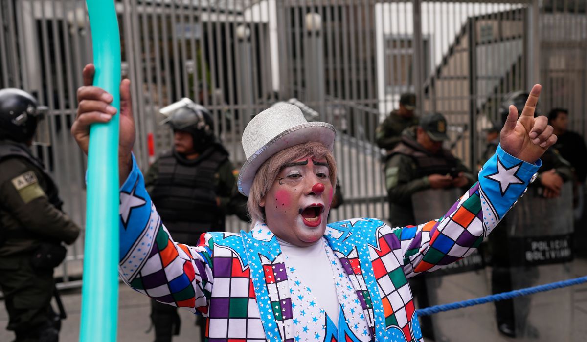 LA PAZ, Bolivia — Dozens of clowns marched through the streets of Bolivia’s capital on Monday to protest a government decree that limits extracurricular activities, threatening their livelihoods.