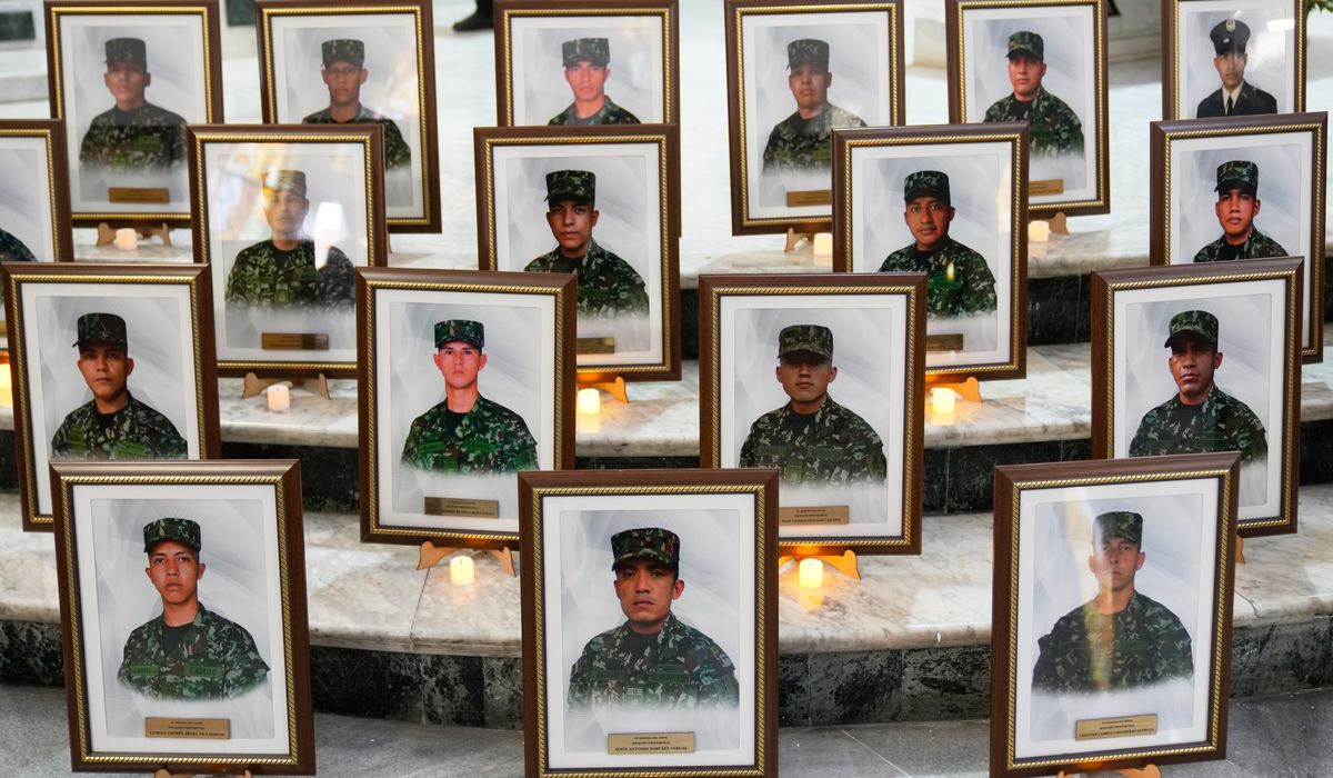 BOGOTA, Colombia — The 69 members of the security forces who died in a military plane crash in Colombia were honored Friday through their photographs, arranged before the altar of a church during a solemn ceremony held in the capital, Bogota.