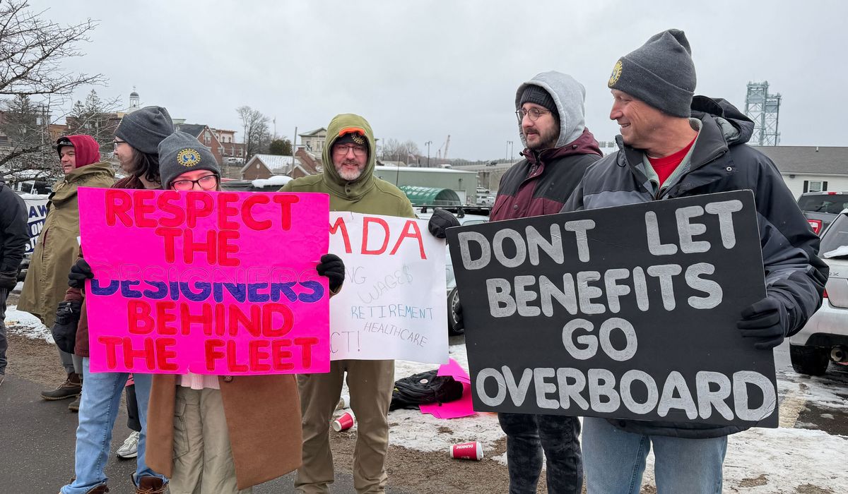 PORTLAND, Maine — Hundreds of designers, clerks and technicians went on strike Monday in Maine at one of the U.S. Navy’s largest shipbuilding contractors.