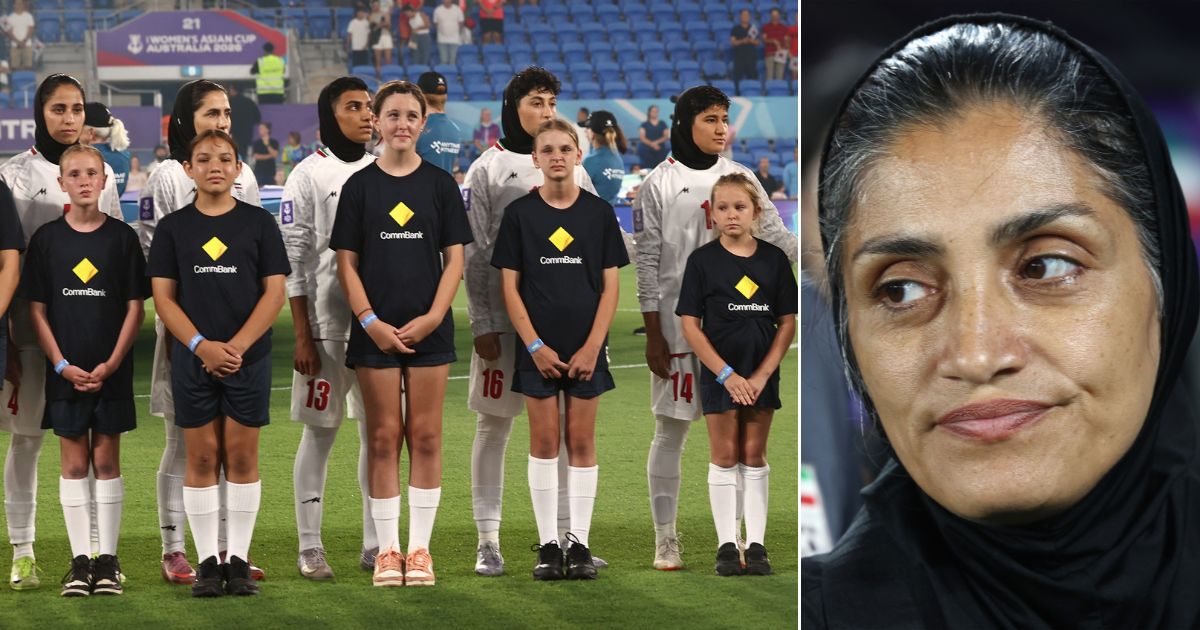 The team’s manager, Marziyeh Jafari, was seen smiling during the anthem as she observed her players’ silence.