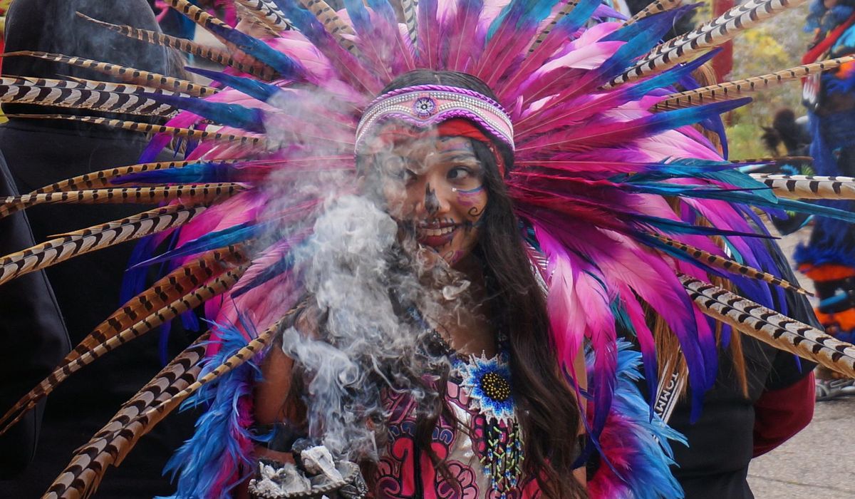 MINNEAPOLIS (AP) — More than 100 people followed Aztec dancers through an arch of paper flowers into El Colegio High School on Saturday morning to visit altars that students had created to commemorate Día de Muertos or Day of the Dead.