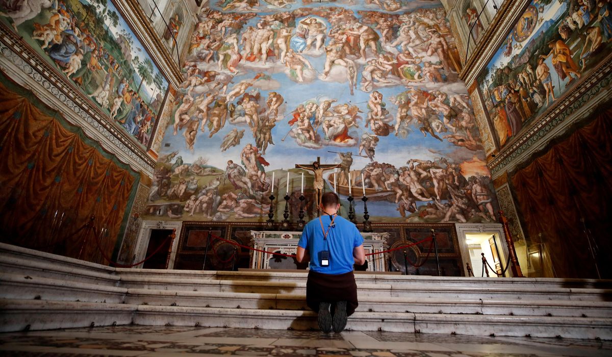 But it was a later pontiff, Pope Julius II, who commissioned the works by Michelangelo. The Renaissance master painted the famous ceiling, the “Creation of Adam” showing God’s outstretched hand, between 1508 and 1512 and later returned to paint “The Last Judgment” on the wall behind the altar.
