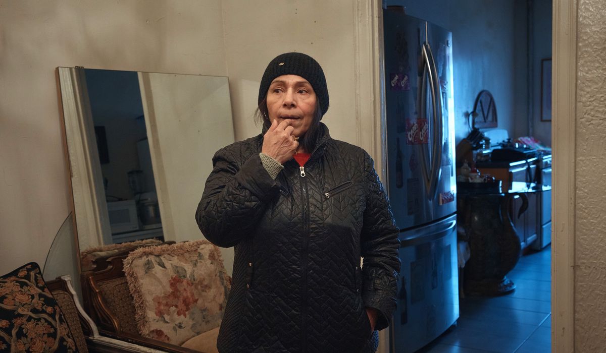 As she waited in line, Gulhayo Yuldosheva said she worried that noxious mold in her apartment had worsened her child’s asthma. Nearby, her downstairs neighbor, Marina Quiroz, was showing a video of rats scurrying through her kitchen to a representative of the city’s tenant protection office.