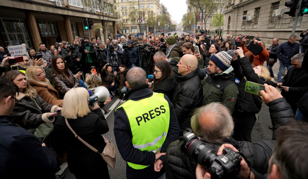 BELGRADE, Serbia — Dozens of journalists blocked traffic on Wednesday outside the office of Serbia’s populist President Aleksandar Vucic to protest what they say are mounting attacks and pressure on the media in the Balkan country.