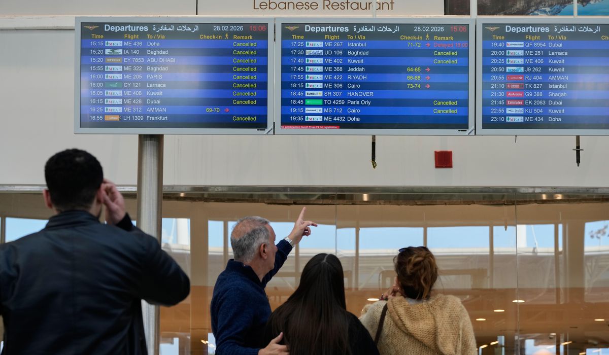 Sen. Mark R. Warner, Virginia Democrat, told reporters Tuesday that his office had received calls from dozens of Americans in the UAE, Qatar, Iraq and Israel who were unable to leave the region. He accused the administration of providing “zero evacuation support” to stranded Americans.