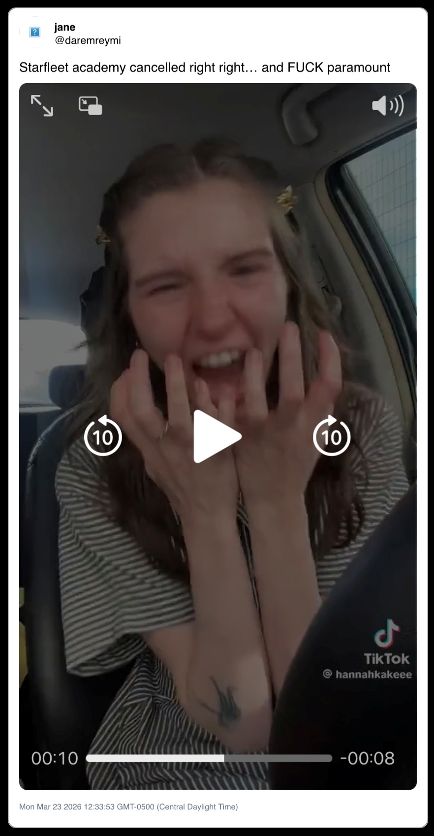 (Note, video clip since deleted from Twitter/X but available on the Wayback Machine. Make sure you have your audio turned down as much as possible before pressing play. We’re talking full-on Beatles at Shea Stadium levels of screaming here.)