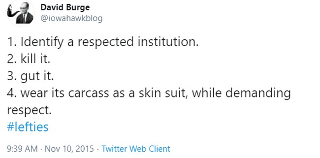 Now? It is a symbol of how the Establishment destroyed itself by becoming an adjunct to an ideological left-wing agenda.