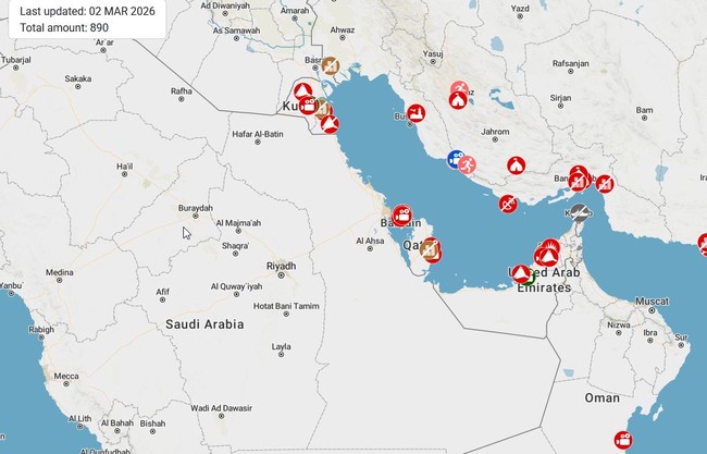 “I popped over to GeoConfirmed’s website… and it verified the impression I’d got from my OSINT feed: Iran is losing this war, badly,” PF posted early Monday. “Because if they weren’t, the Gulf states part of the map below would be absolutely awash in red icons.”