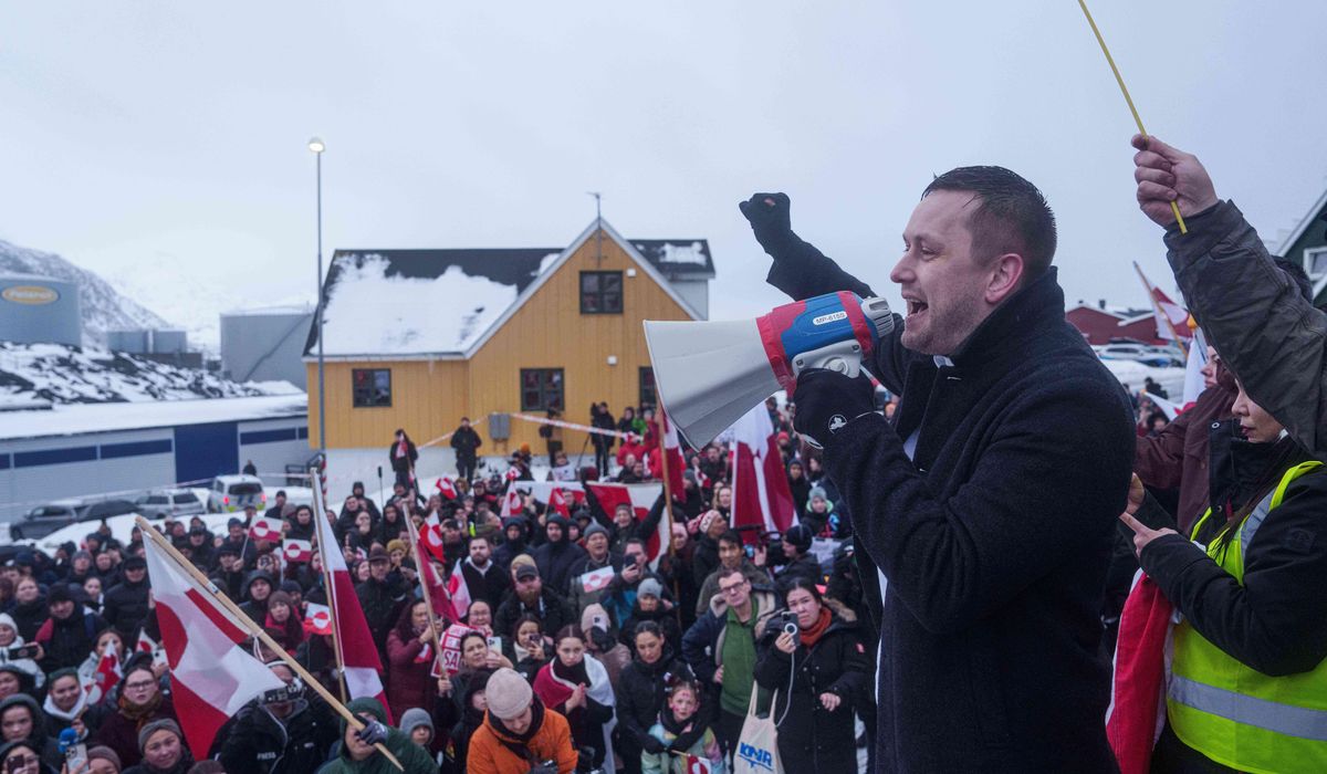 NUUK, Greenland — Thousands of Greenlanders carefully marched across snow and ice to take a stand against U.S. President Donald Trump on Saturday. They held signs of protest, waved their national flag and chanted “Greenland is not for sale” in support of their own self-governance in the face of increasing threats of an American takeover.