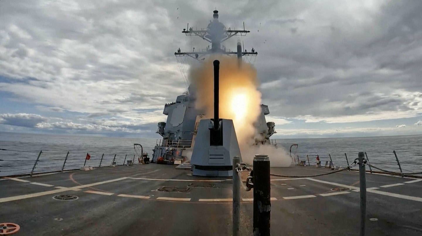 The only video taken Sunday and released by the military has been a set of videos showing the USS Thomas Hudner launching Tomahawk land attack missiles.